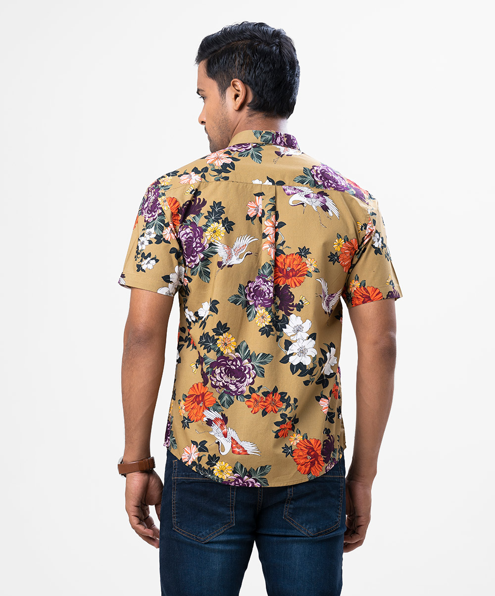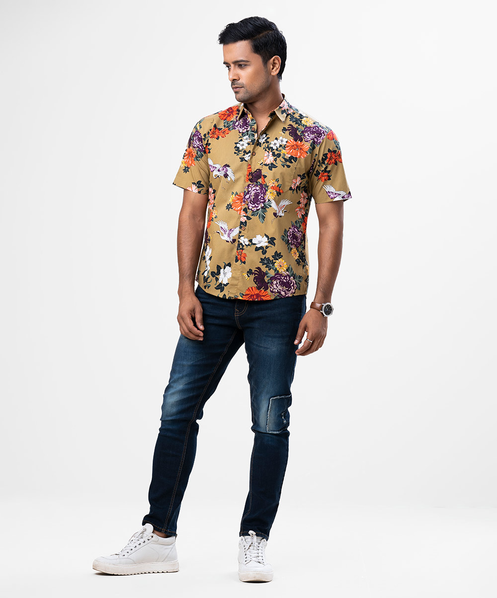 Men’s casual floral printed shirt in print cotton fabric. Classic collar and short sleeves.